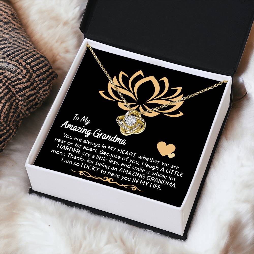"To My Amazing Grandma - YOU are always in MY HEART, whether we are near or far apart. Because of you, I laugh A LITTLE HARDER, cry a little less, and smile a whole lot more. Thanks for being an AMAZING GRANDMA. I am so LUCKY to have YOU IN MY LIFE."